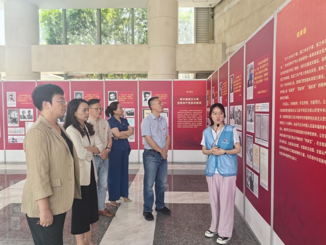在华东师范大学闵行校区法商楼一楼大厅,党员们参观了《中国共产党人的家风展》,学习老一辈革命家、革命先烈及新中国成立以来优秀共产党员的红色家风,汲取精神之源,凝聚奋进力量。