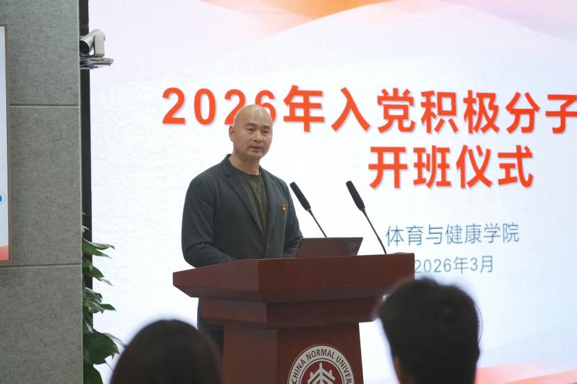 3月25日下午,华东师范大学体育与健康学院2026年学生入党积极分子培训班在学院二楼报告厅开班。本次培训班以习近平新时代中国特色社会主义思想为指导,以筑牢理想信念、锤炼党性修养、勇担时代使命为目标,引导青年学子将个人成长融入体育强国、教育强国建设。学院党委副书记兼副院长李浩、特邀党建组织员徐波等教师代表和学生党支部书记代表及全体学员参加仪式。专职组织员袁春主持开班仪式。