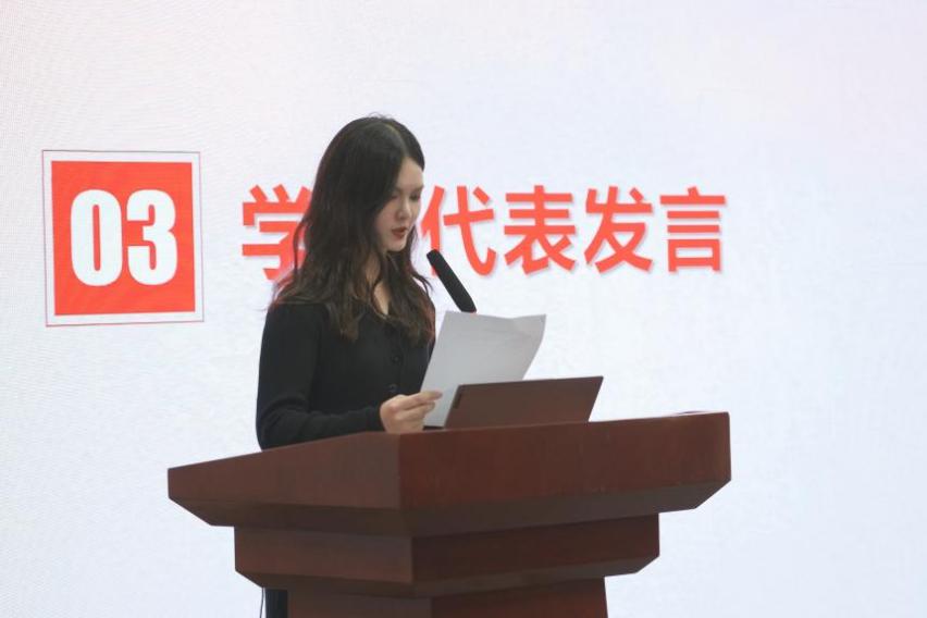 2025级硕士研究生叶子宁代表学员发言,表示将端正态度、严守纪律、积极实践,以实际行动接受党组织考验。